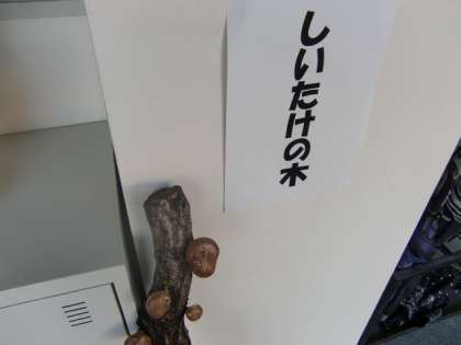 職員室前の廊下に置いたところ、多くの子どもたちが「わあ キノコや!!」「こんなふうに生えてるんや!!」などと、感嘆の声を上げていました。