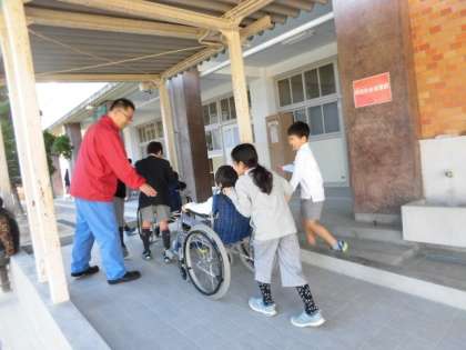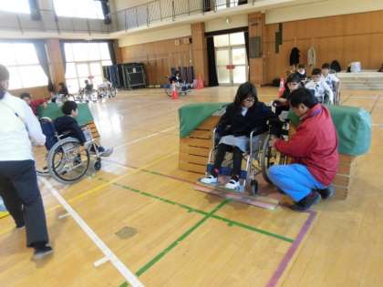 大阪市立心身障がい者リハビリテーションセンターより出前授業に来ていただき、3年生が車いす体験をしました。