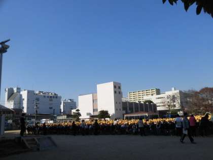 まずは児童朝会と同じように学級ごとに整列し、その後、分団ごとに整列します。