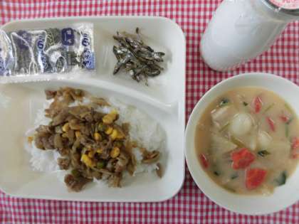 きんぴらちらし、雑煮、ごまめ、牛乳 でした。