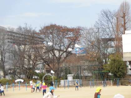 榎本幼稚園のお友だちが、本校校庭に、凧揚げに来ていました。