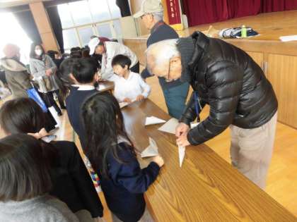 1年生と2年生は、地域の方々とともに、昔あそびを楽しみました。