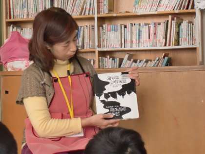 光とかげのトリックで、2倍楽しめる素敵な絵本です。読んでもらった後も子どもたちは、絵本を手に取りひっくりかえしながら、じっくりと絵の世界を楽しんでいました。