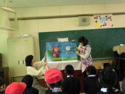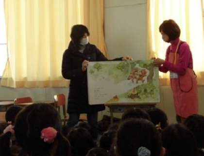 子どもたちは、まっすぐに本に見入り、耳を傾けていました。