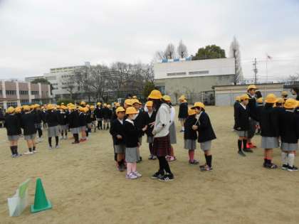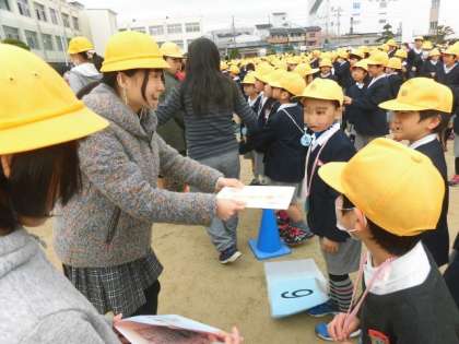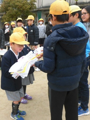 ゲームの後はプレゼントの交換。6年生へは寄せ書き。6年生からは手づくりの雑巾です。最後に、思いで多い、校歌を歌って終了しました。