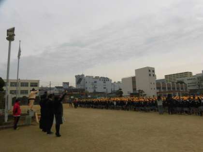 2枚目の写真は、全員で、「1、2、3、わんぱく〜!」と、こぶしを上げ、声を合わせている様子です。