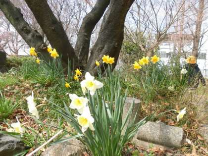 誰が植えたわけでもないのに、季節の移ろいとともに、子どもたちの好奇心を刺激してくれるスイセンたちです。