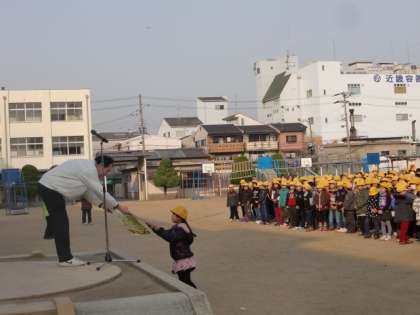 今日の児童朝会で、2名の児童に表彰状が渡されました。