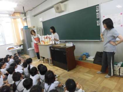 24日(水)の、20分休みに、図書館ボランティアの「ハッピータイム」のみなさんによる読み聞かせがありました。1年生が少人数学習教室で、2・3年生は低学年音楽室、4〜6年生は図書室で行いました。榎本小学校では、「ハッピータイム」のみなさんが子ども達の読書環境を整えてくださったり、読み聞かせなどを通して読書活動を進めてくださっています。今回が今年度初めての読み聞かせでした。とても上手な読み聞かせに、1年生のみんなも静かに聞き入っていました。