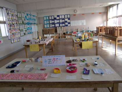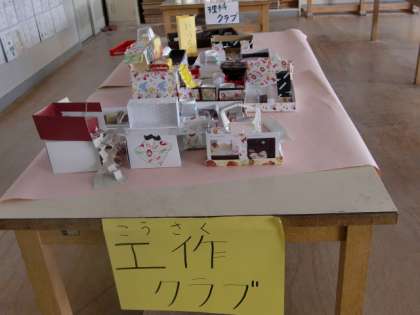図工室では、手芸クラブ、読書クラブ、理科クラブ、まんがクラブ、工作クラブが、展示発表を行いました。