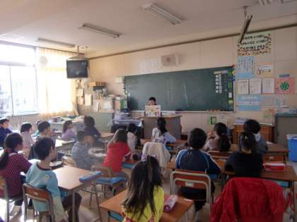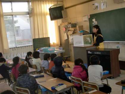 1年生の各学級では、いつもお世話になっているハッピー・タイムさんが読みきかせをしてくださいました。
