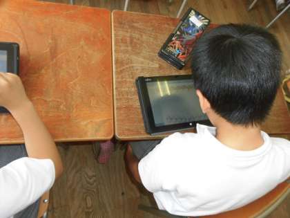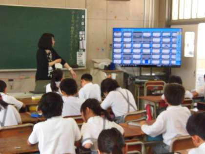 今回は、授業支援としてICT支援員の方に来ていただき、4年生の子ども達にタブレットを使った授業をしていただきました。一人一人のタブレット画面が大型モニターに映されると、学習の様子が一目瞭然でわかります。子ども達も楽しく取り組むことができました。