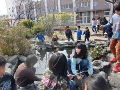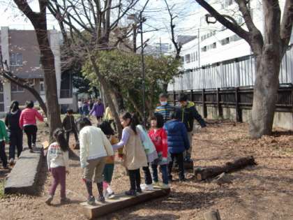暦の上では啓蟄の今日。肌寒く小雪も舞いましたが、いいお天気のえの森には、今日もたくさんの子どもたちの姿があります。
