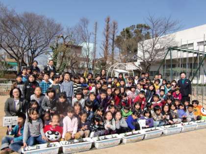 大阪法務局より11月20日に球根をいただいたチューリップ。2年生が大切に育て、順調に育っています。