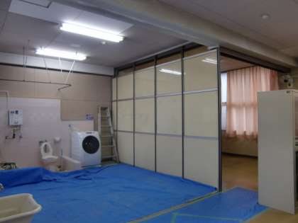 <写真 左> ひまわり教室の改修工事が始まりました。間仕切りを取り払い、新たにサニタリースペースを独立させます。明るく活動しやすい教室に生まれ変わることと思います。