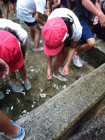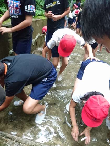 林間学習 魚つかみ