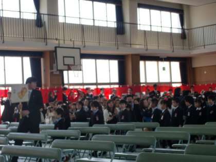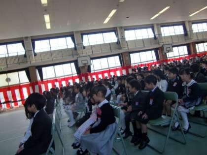 講堂に入ると、みんな行儀よく、しっかりとお話を聞くことができていました。さすが、ピカピカの1年生です。