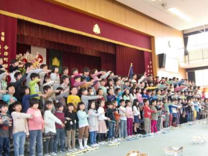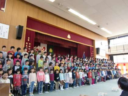 新2年生によるお迎えの言葉では、元気な声で、小学校生活の紹介がありました。