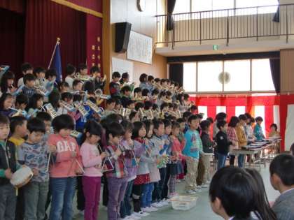 「子犬のマーチ」の合奏と、手話を交えた「友だちになるために」と校歌の合唱も大変素晴らしく、1年生はじっと聴き入り、拍手を送っていました。