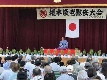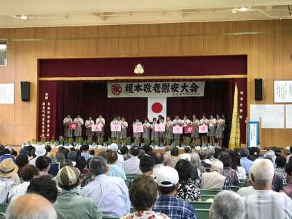 18日に、榎本小学校の講堂でで行われた「榎本敬老慰安大会」に、本校の児童がゲスト出演しました。一つ目は、落語。本校の児童による本格的な落語です。会場も大いに盛り上がっていました。二つ目は、合奏と合唱。4年生以上の有志による演奏でした。美しいリコーダーの演奏と素敵な歌声に会場から大きな拍手が送られました。