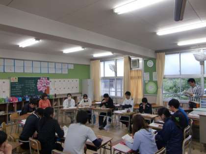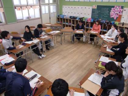 本校では、若手教員が自主的研究組織「ひかりの会」をたちあげ、指導力の向上に取り組んでいます。今年度第1回のひかりの会では、年度初めの学級経営等において気をつけるべき事柄について、先輩教員(研修部長 南野先生)からアドバイスをいただきました。