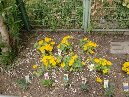 黄色い花はナスタチウム、別名 金蓮花(キンレンカ)です。葉の形が、蓮の葉によく似ています。