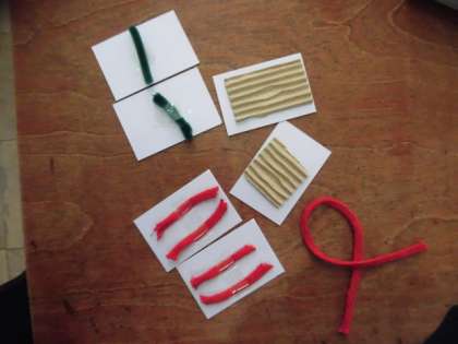 次は、作ったゲームで実際に遊んでみます。ロービジョンの眼鏡やアイマスクなどを着用して体験してみました。「わかりやすかったカードとそうでないカードを仕分けしてみよう」そう言われると、子ども達はすぐに選び始めました。実際に体験することの大切さを改めて感じました。