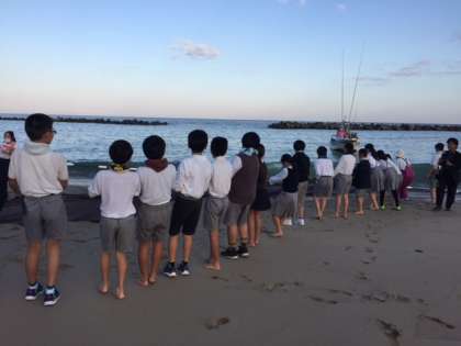 波も穏やかで、砂浜が気持ちいいとここでも大喜びの子どもたち。