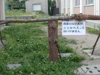 これまでは、カラーコーンで通行止めにしていましたが、管理作業員さんが、えの森の木を再利用して、柵をつくってくれました。