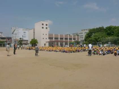 中・高学年も帽子を被り、しっかりと口にハンカチをあてて避難する真剣な姿が光っていました。
