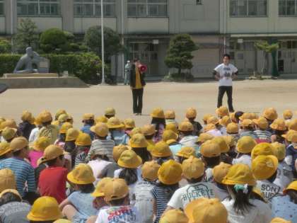 1年生にとっては初めての経験でしたが、『お・は・し』(おさない、はしらない、しゃべらない)を守って訓練に取り組むことができました。