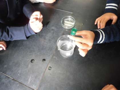 試験管の口の部分を石鹸水に浸しますと薄い膜ができます。