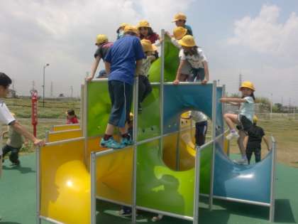 お弁当を食べて、おやつを食べて・・・遊具で遊んだり、テントウムシの幼虫やたまごを、たくさんみつけました。