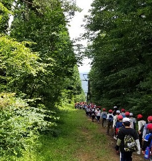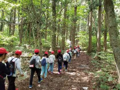 部屋での準備、避難訓練も終わり次は森の中へ散策にでかけます。