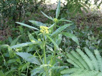 キキョウ、ハギに続いて、ネムノキの築山で「オミナエシ」が咲き始めました。