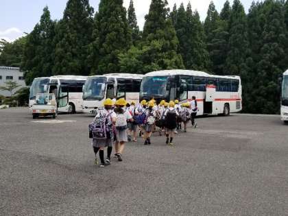 このあと、学級ごとに写真を撮ってバスに乗り込みます。