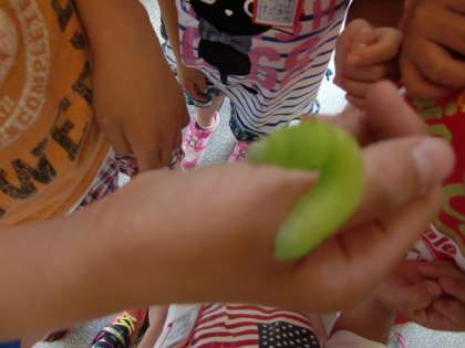 踏まれるとかわいそうだからと、子どもたちが捕まえてきました。
