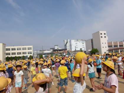 今日の児童集会では、「ボール パス ゲーム」をしました。
