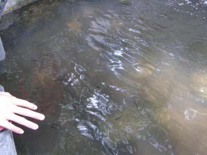 最近昼休みのえの森でちょっとしたブームになっているのが、ニッポンバラタナゴへの「エサやり」です。「エサやりたい!」「エサください!」とたくさんの子が言うので、ほんの少しづつ掌に分けます。池にパラパラ〜っとまくと、タナゴが一斉に集まってきます。池の表面に目を凝らしていただくと、魚影が見えるかと思います。