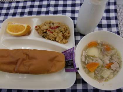 スペイン風の献立です。彩りも鮮やかで、具もたっぷり。