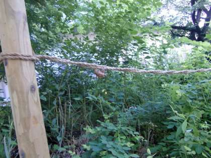 秋の七草ゾーンを囲んだロープに残っている抜け殻を見ると、綱渡りをしながら脱皮したのかな?などと、その瞬間の様子を想像してしまいます。