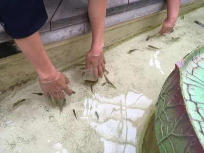 ドクターフィッシュに手を綺麗して貰って大喜びの子どもたち!
