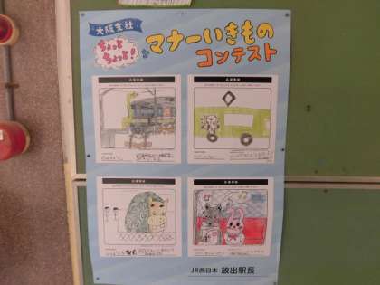 放出駅に作品を貼っていただきました