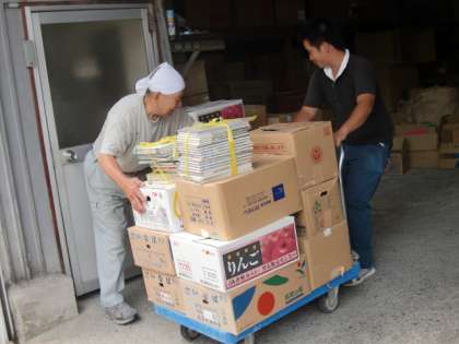 夏休みにおこなった図書整備が終わりました。最後の作業は、古くなった本の廃棄です。古紙回収業者さんに引き取っていただき、売り上げが大阪市の収入になります。