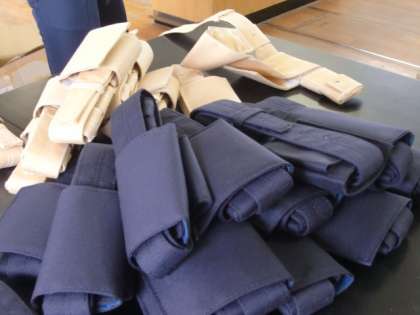 「がんばる先生支援事業」では、せっかくの本校の財産である「土俵」も活用したいと考えています。1学期にも一度土俵を使いましたが、そのときは体操服だけで行いました。今回、土俵が傷まないようにすっぽりと覆えるシートとともに、体操服の上から簡単に着用できる「まわし」も購入しました。