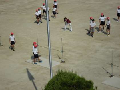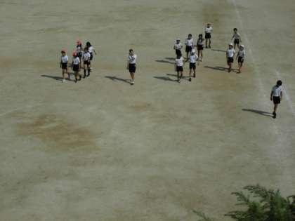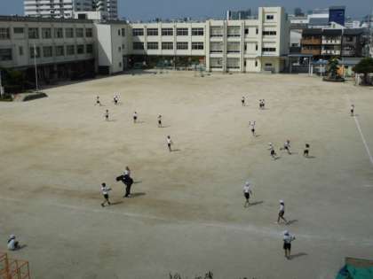 運動場での体育の様子です。