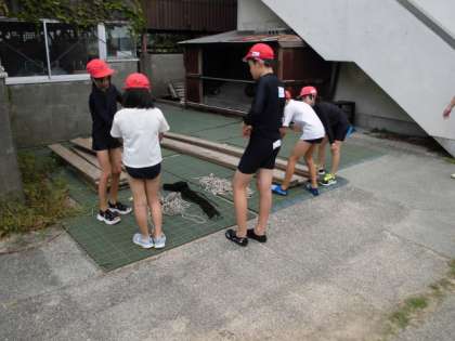 2日目は、イカダ作りの班と焼き板の班が交代します。