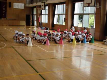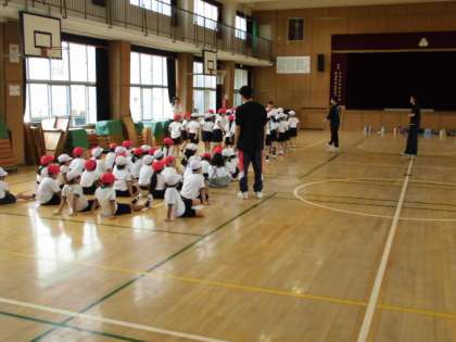 体育館で、入退場の練習の様子です。