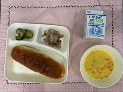 おさつパンはほんのりサツマイモの甘味があり、ふわふわもちもちの食感でとても児童に人気のパンです。