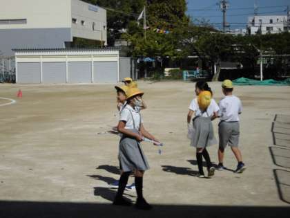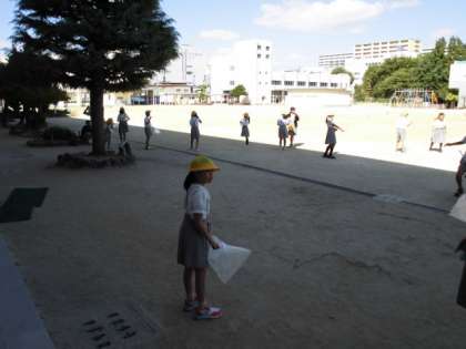 強風の中の実験で、楽しく実験していました。
